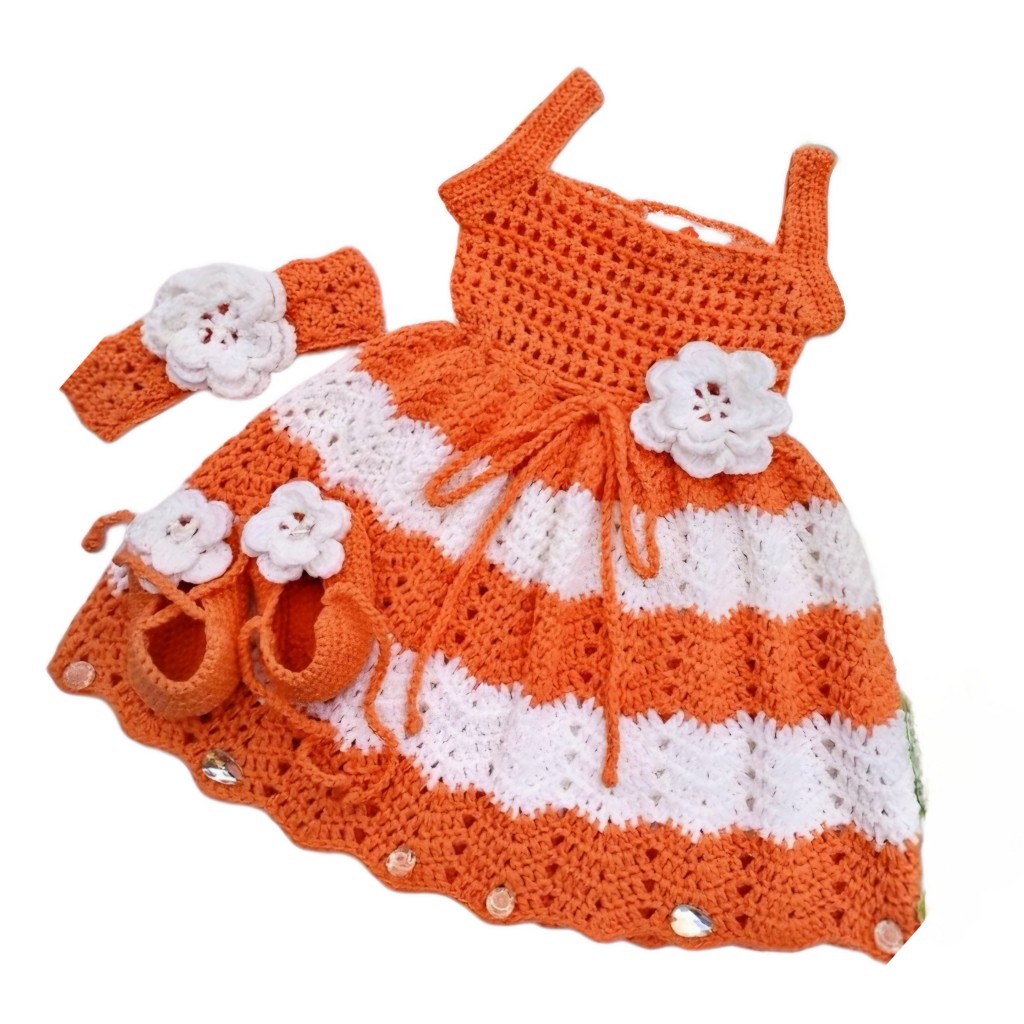 سارافون قلاب بافی دخترانه با پاپوش وهد کدGh344Vu