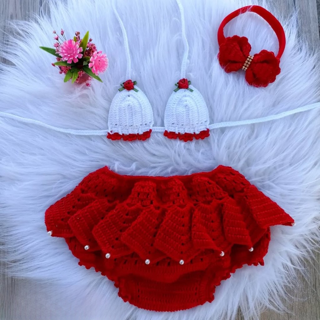 ست ۳ تکه لباس یلدایی بافتنی بچه گانه مدل 0f99 Haawia