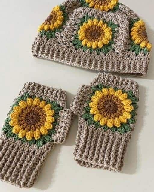 کلاه قلاب بافی زنانه با دستکش