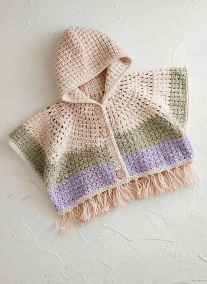 اين شنل بهروش كاملا دستبافت با استفاده از نخ هاي باكيفيت بی بی ترك نرم وضدساسیت، مخصوص پوستهاي لطيف كودكان دلبند شما، توليد شدهاست.